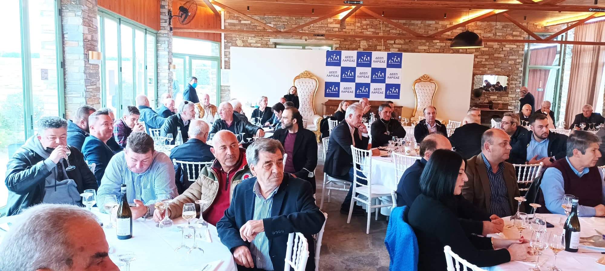 Στην εκδήλωση, μεταξύ άλλων, παρέστησαν οι βουλευτές του Ν. Λάρισας, Χαρακόπουλος Μάξιμος, Κέλλας Χρήστος και Μπίζιου Στέλλα, η πρόεδρος του περιφερειακού συμβουλίου, Δόκου Τάνια, ο επικεφαλής της δημοτικής ομάδας του Δήμου Λαρισαίων, Μαμάκος Θανάσης, πολιτευτές του Νομού, ο πρώην πρόεδρος της ΔΕΕΠ, Καπετάνος Χρήστος, δημοτικοί σύμβουλοι, πρώην δήμαρχοι, εκπρόσωποι ΔΑΚΕ και επαγγελματικών συλλόγων, πρώην πρόεδροι ΟΝΝΕΔ Λάρισας, Ελασσόνας, Αγιάς, Φαρσάλων, Τυρνάβου, μέλη ΔΕΕΠ, πρόεδροι και μέλη ΔΗΜΤΟ, καθώς πολλοί παλιοί Οννεδίτες και μέλη της ΜΑΚΙ και παρά πολλοί φίλοι της ΝΔ, ενώ προβλήθηκε και πλούσιο αρχειακό υλικό.