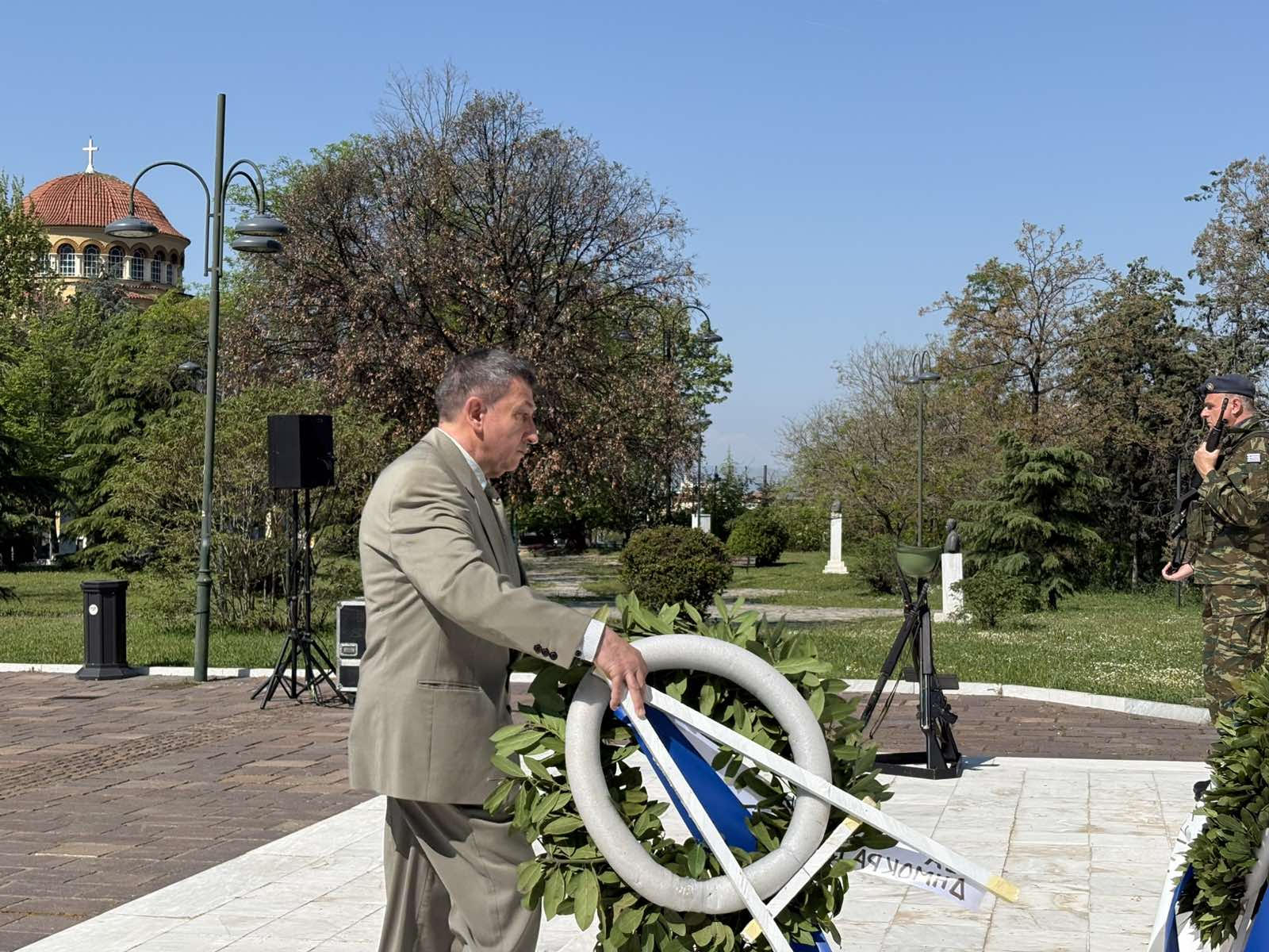 Αφού στην αρχή τελέστηκε Επιμνημόσυνη δέηση στο Ηρώο της Πόλης, ακολούθησε η κατάθεση στεφάνων. Στεφάνι για λογαριασμό της Δ.Ε.Ε.Π. Λάρισας Ν.Δ. κατέθεσε ο Ταμίας κ. Θοδωρής Γερογιώκας.